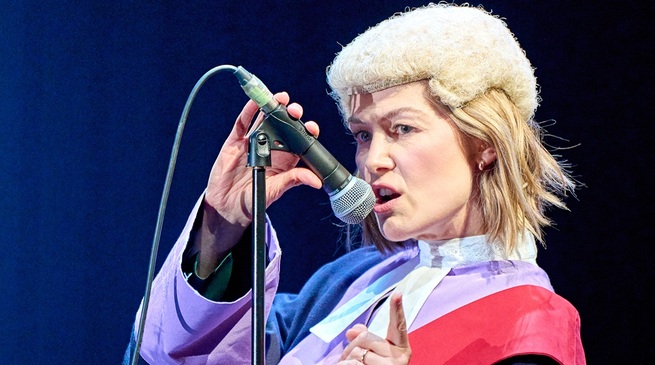 Az NT Live közvetítéssorozatában nagy sikerrel játszott Prima Facie írójának, Suzie Millernek és rendezőjének, Justin Martinnak újabb együttműdésével létrejött Inter Alia című darabban ismét egy sikeres jogásznő a főszereplő, ezúttal az Oscar-díjra jelölt Rosamund Pike (Holtodiglan, Saltburn) alakításában. Nevezetesen a karrierje csúcsán álló Jessica Parks koronaszéki bírónő, aki a talár mögött szerető feleség és egy tizennyolc éves fiú féltve óvó édesanyja, mellesleg nagy karaoke rajongó. Sikerül foggal körömmel egyensúlyban tartania hivatását és családanyai szerepét, ám egy váratlan esemény azzal fenyegeti, hogy teljesen kibillenti egyensúlyából az életét, beleértve a családi békét és a gondosan felépített karriert. Vajon képes lesz-e talpon maradni és egyben tartani a családját, egzisztenciáját?